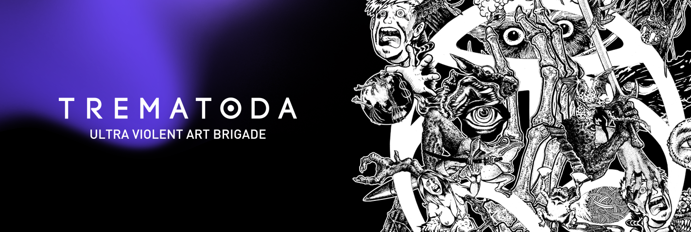 「吸虫」が血を吸うイメージより アート、ミュージックとあらゆる文化を吸収し、 我々なりに再構築し発信するものとする。 新たなるアーティストとの出会い、その細胞はさらに増殖する それがTREMATODA ULTRA VIOLENT ART BRIGADEである