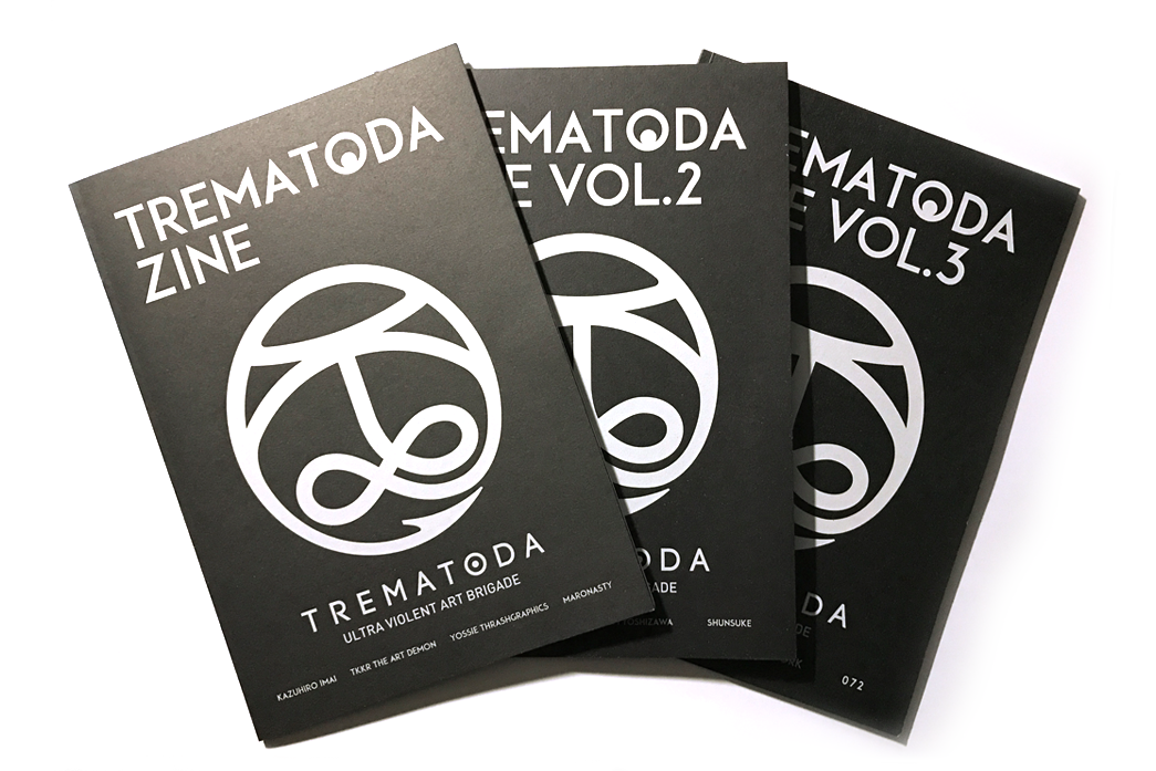 Trematoda = 「吸虫」 Our name comes from a class of parasite called 'trematoda', more commonly known as a 'fluke'. We absorb the art, music and culture around us and reconstruct it into original forms. We propagate through encounters with new artists, adding new cells to the organism that is the TREMATODA ULTRA VIOLENT ART BRIGADE.